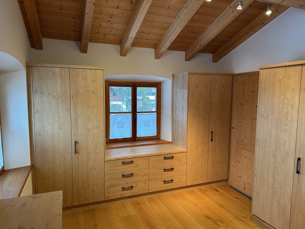 Jedes Detail nach Maß, Ankleidezimmer aus Fichte, gebürstet und gebeizt für eine warme Atmosphäre Klare Linien und Materialien schaffen geordnete Strukturen Handwerk mit Charakter. Räume mit Persönlichkeit. Als Meisterbetrieb im Möbel- und Innenausbau verbinden wir traditionelle Handwerkskunst mit zeitgemäßem Design. Ihr Wunschmöbel. Maßgefertigt. Durchdacht. Gemeinsam Entwerfen und Gestalten wir Ihr Wunschmöbel. Ob vom Kleinauftrag bis hin zur kompletten Wohnraumgestaltung. Ihre Vorteile: Verwirklichung eigener Ideen Ein Ansprechpartner Detaillierte Planung und volle Kostenkontrolle Planung und Anfertigung aus MeisterhandInteresse geweckt? Sprechen Sie mich gerne an Altes Eichenholz mit neuem Leben